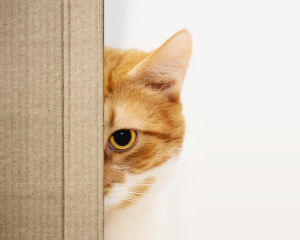 De eigenaren hebben mij instructies gegeven hoe ik de katten het beste naar binnen krijg. Eten in de kamer zetten, de deuren open zetten, zodat de keuken als sluis kan dienen. Zelf achter de tuindeur gaan staan en zodra de katten naar binnen lopen de deur sluiten. Makkelijk toch? Bij Hippickx wel, die kwam al aangelopen toen ik hem riep en ging meteen in de kamer zijn bakje leegeten. Haasje was lastiger. Ze is erg schuw en mag mij daarom niet zien. Ik sta daarom achter de deur klaar om deze te sluiten als Haasje richting de keuken loopt. Door een kier van de deur kan ik Haasje in de tuin zien en zie ik haar argwanend richting de tuindeur lopen. Ik blijf stil staan en draai mijn hoofd richting Hippickx, die al bijna zijn eten op heeft. Ik kijk weer door de kier en zie helaas geen Haasje… he balen! Heeft ze mij toch gezien. Ik draai mijn hoofd om de deur, zodat ik meer zicht heb op de tuin, maar geen spoor van Haasje. Vervolgens kijk ik naast mij achter de deur en zie een katje met haar hoofd ook om de deur kijken. Vervolgens kijkt ze mij aan alsof ze wil vragen: “Op wie wachten we eigenlijk?”. Ik doe snel de deur dicht en zet het eten voor Haasje bij haar neer. Haasje blijkt dus toch niet zo’n hele grote angsthaast te zijn!